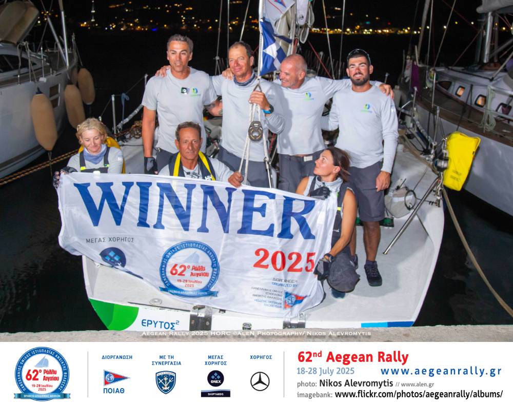 Με τον τίτλο του 62ου Ράλλυ Αιγαίου συνοδεύτηκε η επιστροφή του σκάφους ERYTOS II, μετά από δεκαπέντε χρόνια απουσίας, στον δεύτερο τη τάξει παλαιότερο αγώνα ανοικτής θάλασσας της Μεσογείου. Το πλήρωμα του Κώστα Μάνθου, εκμεταλλεύτηκε τις 2 πρωτιές στις ισάριθμες πρώτες ιστιοδρομίες του Ράλλυ και άντεξε στην αντεπίθεση που εξαπέλυσε στα δύο τελευταία μπράτσα το PEGA της Σχολής Ναυτικών Δοκίμων. Η πρώτη θέση στην κατηγορία Performance κρίθηκε στην τέταρτη και τελευταία ιστιοδρομία από τους Λειψούς στον Φοίνικα Σύρου. Το PEGA κατάφερε να φτάσει στην δεύτερη συνεχόμενη νίκη, η οποία όμως δεν ήταν αρκετή για να ρίξει από την κορυφή το ERYTOS II του Ναυτικού Ομίλου Παλαιού Φαλήρου που τερμάτισε δεύτερο. Με διαφορά 1.5 βαθμό ποινής (6.25-7.75) από το PEGA το πλήρωμα του Μάνθου θα σηκώσει την Δευτέρα στην Ναυτική Διοίκηση Αιγαίου στον Πειραιά την κούπα του νικητή στο 62ο Ράλλυ Αιγαίου.